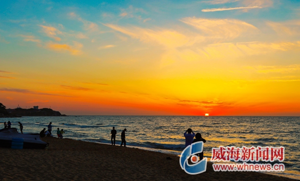 6月15日,游客在国际海水浴场观看夕阳。随着中高考结束和夏季的到来,我市迎来旅游高峰,碧海蓝天的精致美景,吸引全国各地的游客前来游玩。