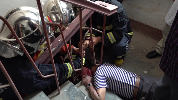男子不慎摔倒头部卡入栏杆 消防紧急施救