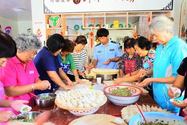 赵云博和社区居民一起开展活动。 资料片