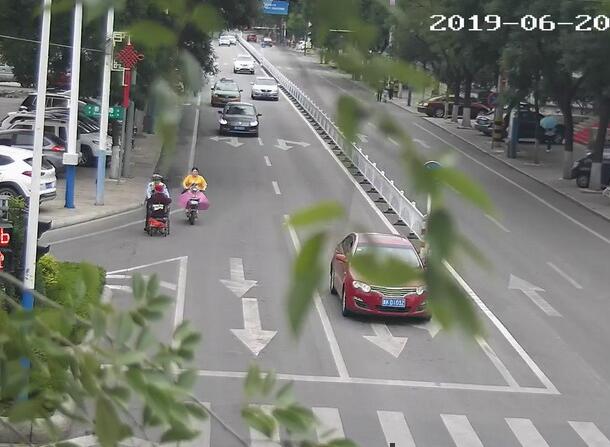 当行车灯变成红灯以后,韩翔宇一边用手势示意身边车辆避让,一边小心翼翼地推着轮椅,将老人送过路口。往来车辆在看到这一幕后,主动减速或避让,为他们留出一条“爱心通道”。