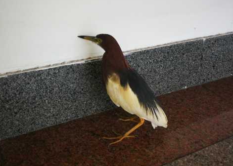 威海市陆生野生动物收容救护所工作人员很快赶到,一眼认出这只鸟是只池鹭,属国家三级保护动物,主要栖息在沼泽、稻田、池塘等附近水域。
