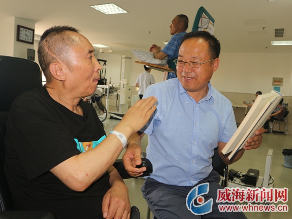 威海新闻网7月23日讯(记者 赵树一)日前,威海报对市民马晓宇独自照顾偏瘫丈夫赵吉华十余年的事情进行了报道,引起社会关注。7月10日,威海报又报道了华益社工人员到医院探望了马晓宇及其丈夫赵吉华,表示可为老人提供公益服务的消息。7月19日下午,华益社工人员来到医院,帮助马晓宇陪伴赵吉华做康复、读书聊天,给马晓宇腾出了点处理私人事务的时间。