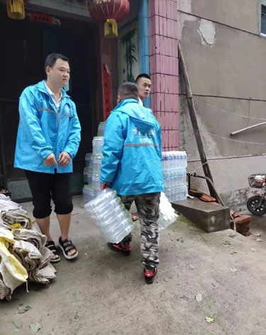 饿了么骑手赶赴章丘灾区参与救灾