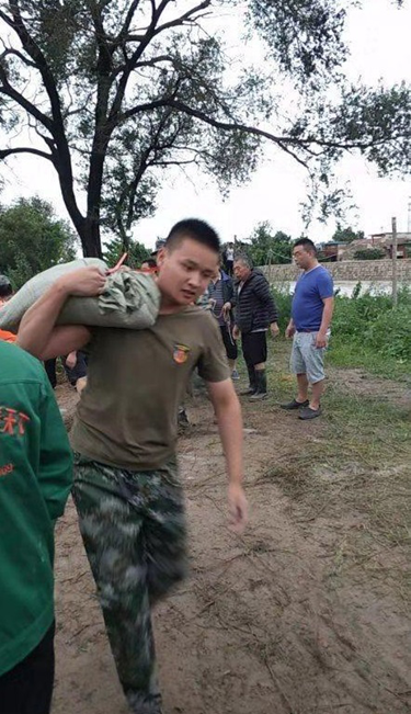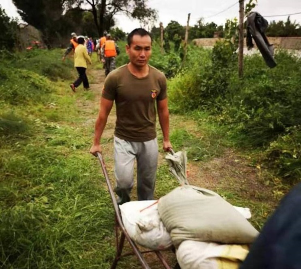孙浩在抢运沙袋