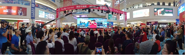 8月18日下午,居然之家威海经区店歌声涌动,《我和我的祖国之天下相亲与相爱》主创人员、演职人员以及众多威海摄影爱好者齐聚一堂,激动地期待他们拍摄数月的电视艺术片正式上映。在该片中友情演出的山东大学(威海)艺术学院学生带来独舞《扇舞》、双人舞《秋》,威海霍纳乐团的小朋友带来了巴扬合奏《诚信歌》、刘盼盼工作室献上舞蹈《传奇》,摄影爱好者张玲深情朗诵配乐诗《大写的中国》……人们心中的热情慢慢被点燃。
