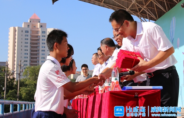在随后的表彰环节,威海一中副校长林罗军宣读了关于授予徐兆聪、卢子悦等590名新生“军政训练先进个人”及授予20多个班级“军政训练优胜班级”“韵律操训练优胜班级”“内务卫生优胜班级”等荣誉称号的决定,学校领导及嘉宾随后为获奖班级及先进个人颁发奖状和证书。