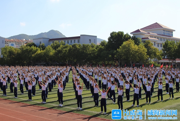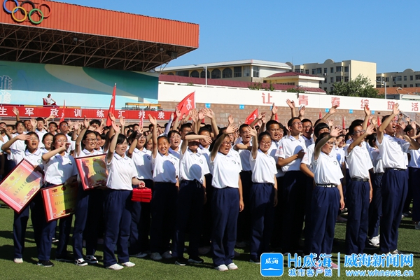 班旗猎猎,队伍整齐,口号嘹亮……8月31日,在经历了8天令人难忘的军政训练后,威海一中65级千余名高一新生在学校西校区操场参加回报表演暨总结表彰大会,向学校领导及家长们展示军训成果,并以此为新起点,吹响了迈向高中新生活的号角。