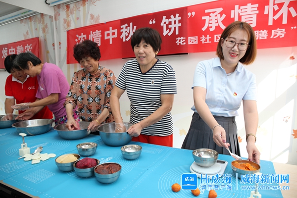 9月11日上午,鲸园街道花园社区开展“浓情中秋 ‘饼’承情怀”活动,社区工作人员教大家制作冰皮月饼,吸引不少居民参与。活动开始40分钟后,百余个月饼制作完成,不少居民拿出手机拍照留念。(威海晚报记者 王茂忠 摄)