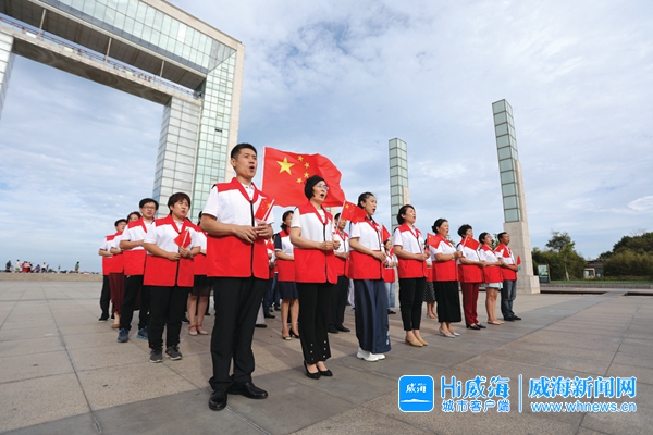 参与此次快闪活动的,绝大多数是我市近年来成功捐献造血干细胞的志愿者,他们汇聚到这里,为祖国送上祝福,用自己的亲身经历宣扬捐献造血干细胞的社会效能。刘杰是威海市口腔医院的一名外科医生,今年上半年成功捐献了造血干细胞,拯救了一名29岁妈妈的生命。“今天的我既是一名医务工作者,也是一名骨髓捐献志愿者,还是一名对祖国饱含热情的中国公民,希望通过这个快闪活动,号召更多人加入到造血干细胞捐献队伍中来,拯救更多人的生命,弘扬‘人道、博爱、奉献’的红十字精神传。”他说。