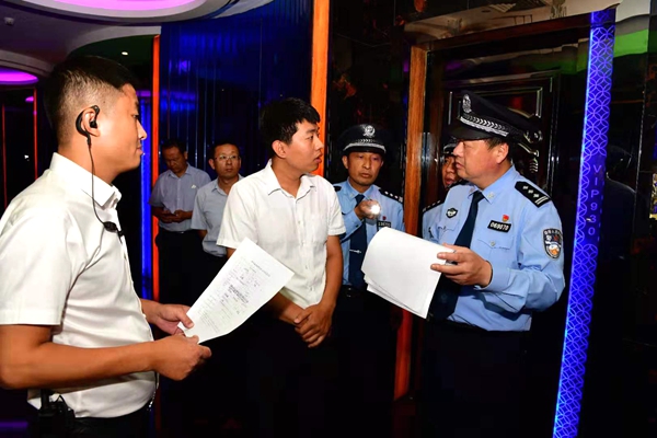 民警在排查治安和消防隐患。 夏旭东 摄