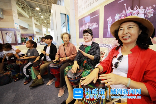 现场体验非洲鼓。记者 杨正 摄