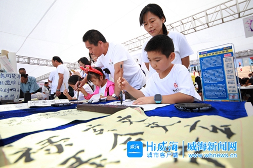 体验书法。记者杨正摄