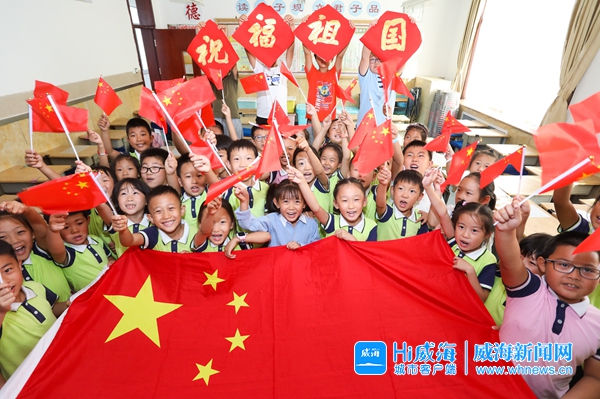 新中国成立70周年大庆来临之际,威海市实验小学及幼儿园举行“祖国在我心中,我与国旗合影”活动,让孩子们在心里种下爱国的种子,祝福祖国母亲繁荣昌盛、美丽富强。记者 孙大伟 摄