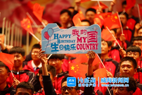 9月25日,威海出入境边防检查站组织青年干部到郭永怀事迹陈列馆参观学习,通过讲解员声情并茂的讲解,深入了解郭永怀光辉的一生,追寻红色足迹、感悟永怀精神。9月27日,荣成石岛管理区石岛实验小学举行喜迎新中国成立70周年庆祝活动,上千名学生列队摆出“我爱中国”巨型图案,表达对祖国的热爱。9月28日下午,团市委在山东药品食品职业学院体育场开展“我与祖国共奋进——国旗下的演讲”全市特别主题团日活动,威海各大高校师生共4000余人参加,通过演唱、朗诵、演讲多种形式真情告白祖国,现场充满青春洋溢、朝气蓬勃的气氛。9月30日上午,在新中国成立70周年及九九重阳节来临之际,环翠楼街道商圈党委工作人员、福鑫集团党支部团队带着油、大米、牛奶等礼物走进沐浴阳光老年公寓,看望住在这里的老人,送上节日的祝福和诚挚的问候。