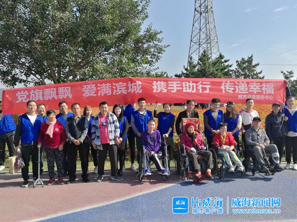 请访问原网站:www.whnews.cn/威海新闻网10月14日讯(记者 赵树一)10月12日,市残联、威高护理院开展“党旗飘飘,爱满滨城”公益活动,组织14名残疾人朋友,游览羊亭河湿地公园。当日9时许,14名残疾人朋友,或坐着轮椅、或拄着拐杖,在各自家属和威高护理院志愿者陪护下,来到羊亭河湿地公园里游览。大家沿着花间小径,漫步花海之中。见好景,则驻足合影留念,小憩时,则齐聚聊天,他们中既有旧识,又有新朋,玩得好不惬意。