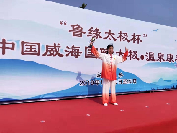 2019年10月20日,“鲁缘太极杯”2019中国威海国际太极·温泉康养大会在威海市文登区汤泊温泉度假村圆满落下帷幕。经过两天的激烈角逐,来自山东省济南市、淄博市、威海市的六家代表队获得大会太极大赛集体一等奖,来自山东淄博华缘太极代表队的包聪聪、河北代表队的张敬捧分别获得大会太极推手大赛男子组、女子组第一名。