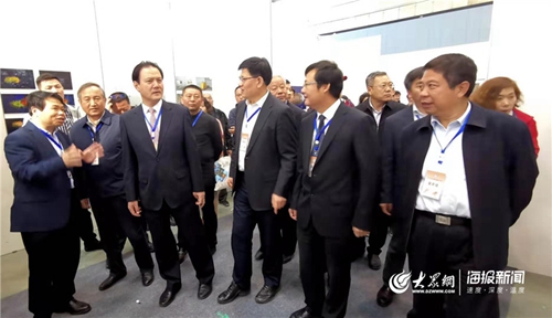 11月1日 ,中国文联党组成员、副主席、书记处书记李前光(左三)、山东省文联党组书记、副主席王世农(右三)等参观展览。