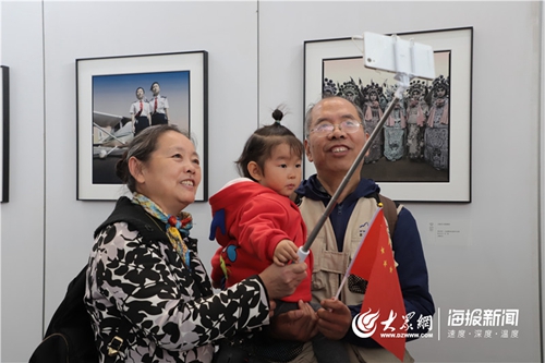 11月1日 ,参展观众在展览作品前合影留念。