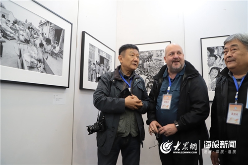 11月1日,外国摄影家代表加拿大摄影师费朗索瓦•那多与参展摄影家代表钱捍、黄利平交流。