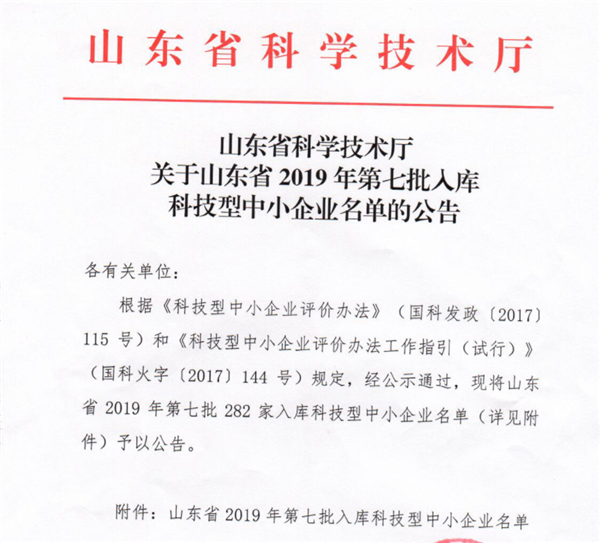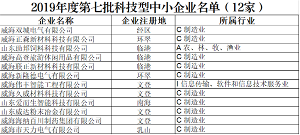 近日,山东省2019年第七批282家入库科技型中小企业名单公布,其中,我市12家企业入选。