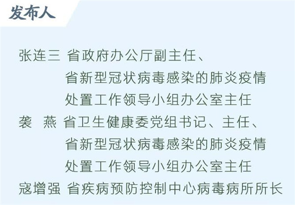 新型冠状病毒感染的肺炎疫情发生以来,我省深入贯彻落实习近平总书记重要指示要求和党中央决策部署,认真抓好各项防控工作,取得了一定成效,也受到社会各界和媒体的高度关注。今天上午,省政府新闻办召开新闻发布会,邀请省政府办公厅副主任、省新型冠状病毒感染的肺炎疫情处置工作领导小组办公室主任张连三,省卫生健康委党组书记、主任、省新型冠状病毒感染的肺炎疫情处置工作领导小组办公室主任袭燕,省疾病预防控制中心病毒病所所长寇增强,介绍全省新型冠状病毒感染的肺炎疫情防控工作有关情况,并回答记者提问。