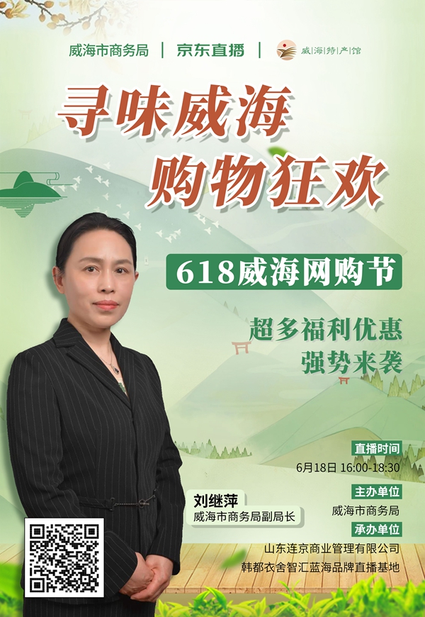为提升威海优质产品品牌影响力,促进外贸企业开拓国内市场,6月18日,由威海市商务局主办,山东连京商业管理有限公司、韩都衣舍智汇蓝海品牌直播基地承办的“6·18威海网购节”活动,将从下午16:00开始,在淘宝、京东平台同时进行直播带货,届时还有“神秘嘉宾”亮相直播间,快来看看吧!