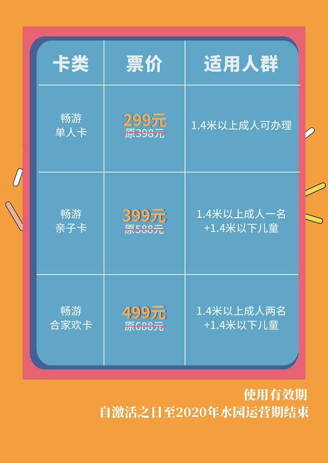 湿身派对、戏水派对、电音派对、美食派对、狂狼热舞,一个都不能少。大喇叭、造浪池、双龙过山车、大水寨、趣味水堡……30+游乐项目嗨翻天。