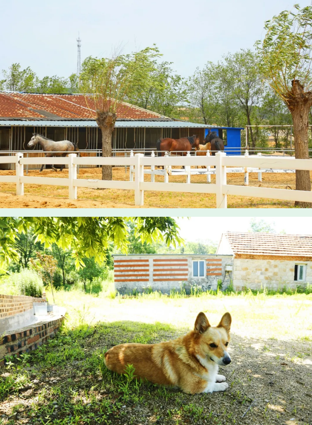 西七夼村旅游业发达,以往一到节假日,村庄南侧百斯特马场内早早就挤满游客。马场后面小山坡上,也有一个民宿区。炎炎夏日,马场主人孙鹏饲养的柯基犬松子最喜欢敞着肚皮在这里,和小朋友们一起乘凉、嬉闹。