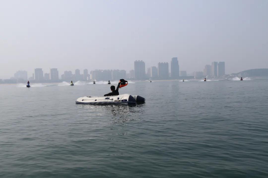 为有效应对海水浴场突发险情,提升海上应急救援处置能力,7月16日,高新区公安分局、区农经局、区市政局、浴场管理处、区应急办、酷艇小镇游艇俱乐部海上救援中心等相关部门和单位在金海滩海水浴场、国际海水浴场联合举行海上应急救援演练,高新区党工委委员、工委办公室主任张强,市应急管理局、市政府办公室值班室、市海事局刘公岛海事处相关负责人现场观摩演练。