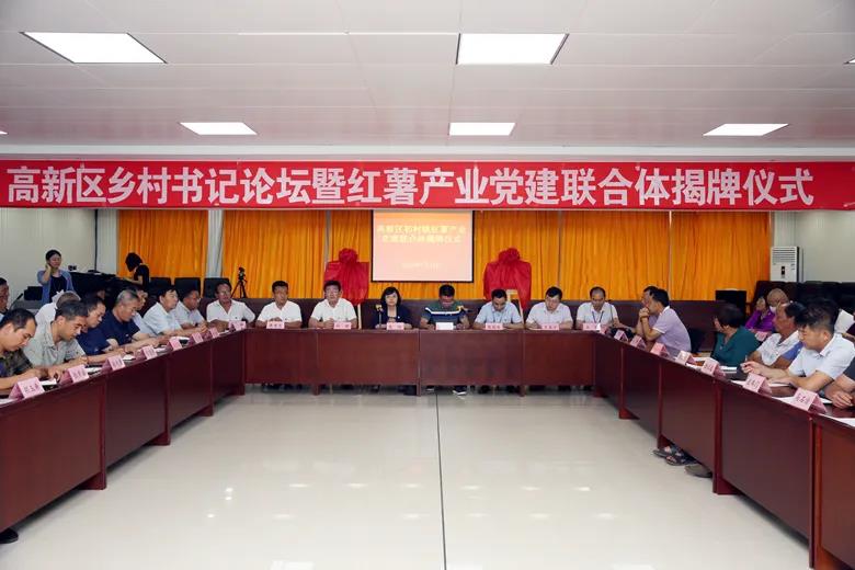 7月13日,高新区举行乡村书记论坛暨红薯产业党建联合体揭牌仪式,高新区工委组织部相关负责人,镇街党(工)委书记、副书记、组织委员,农村党支部书记、第一书记、部分村委会主任等60余人参加活动。