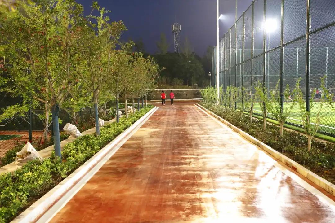 7月20日晚,记者走进高新区华田体育公园,高端大气的综合性运动场映入眼帘,红色塑料胶粒跑道环绕着宽敞的绿茵足球场、篮球场、网球场;不远处的儿童娱乐场,滑梯、秋千、平衡木等设施应有尽有;还有全民健身广场,更是男女老少的“健身圣地”。公园内,绿植错落有致,整个公园空气清新,时尚舒适。相信不久后,这里将成为市民茶余饭后的消食、遛弯打卡地。