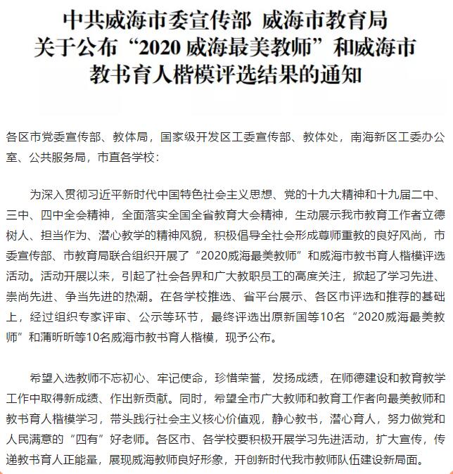 祝红星 威海火炬高技术产业开发区第一小学(来源:市教育局)