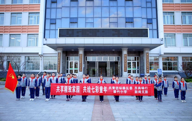10月30日,由共青团环翠区委、齐商银行威海分行主办,威海新闻旅行社承办的精致童年红色马石山公益之旅授旗仪式在翠竹小学举行。来自翠竹小学的40余名学生走进乳山胶东育儿所、马石山十勇士纪念馆,感恩母爱、铭记先烈、传承红色基因,共享精致家园,共绘七彩童年。