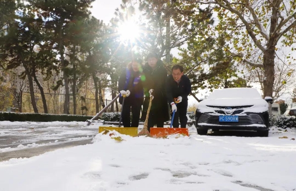 为确保火炬大厦院内及广场停车场交通安全通畅,方便群众办事,管委机关干部自觉拿起清雪工具对办公楼前及广场的道路进行清扫。经过一个多小时的清理,各单位将本单位责任区域内的积雪和冰冻一扫而光,为前来办事的群众开辟了一条通畅的道路。(来源:高新区党政办公室)
