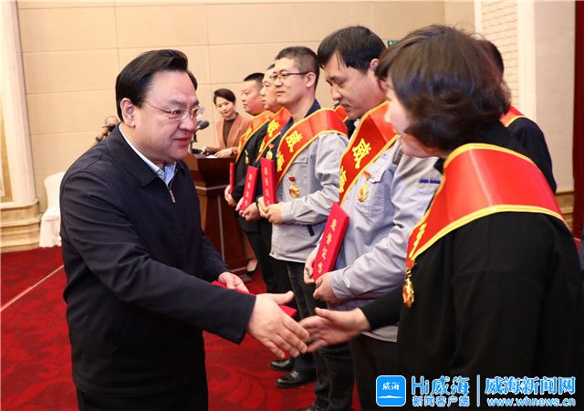 近年来,全市广大职工脚踏实地勤奋工作,持之以恒追求卓越,涌现出一大批爱岗敬业、精益求精、技术精湛、善于攻坚的高素质技术工人,为威海经济社会发展作出了积极贡献。为表彰先进、树立榜样,市政府决定命名蔡玉印等20人“威海工匠”称号,大会还命名10家单位为“威海市全员创新企业”,命名10家创新工作室为威海市示范劳模(工匠人才)创新工作室,命名10人为“威海市职工创新明星”、10人为“威海市带徒名师”。