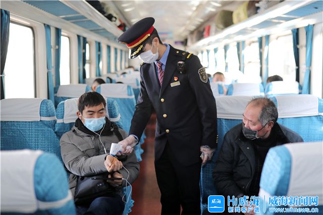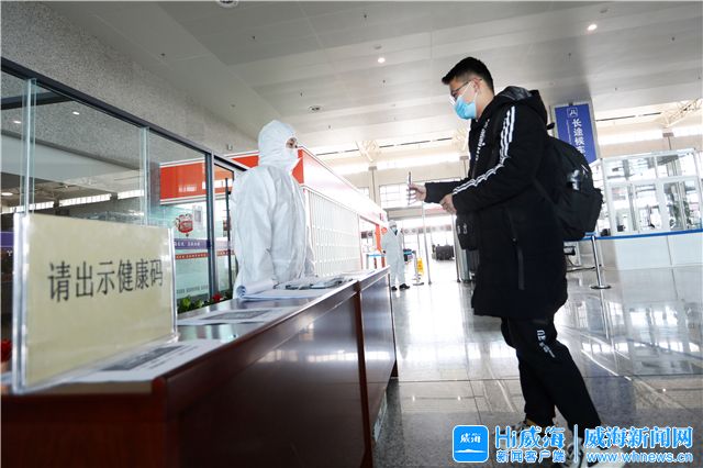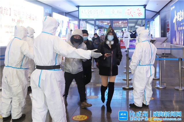 “D6073次列车,很快就要进站了……”随着列车进站提示音的响起,在客运中心威海站的防疫卡口上,近10位身着防护服的工作人员也在各自的岗位上准备就绪。
