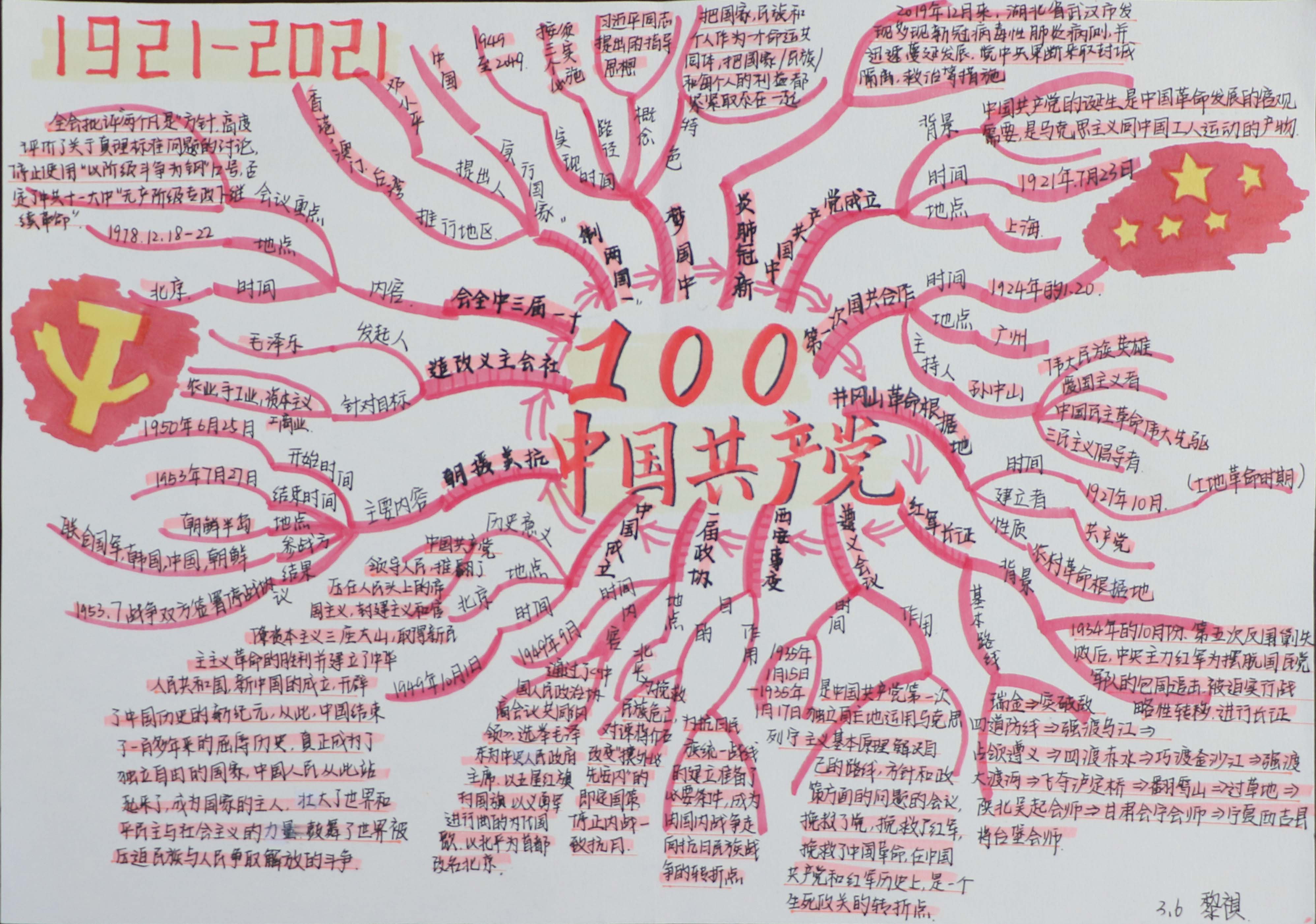 为推动全校师生深入学习党史,学校组织教师、学生以重要时间节点、重要历史事件、重要英雄人物等为线索,制作党史思维导图,挑选出优秀思维导图,推介给全校师生。师生们借助思维导图,通过个人自学、集体研学,快速准确地了解百年党史,重温党的光荣传统和优良作风,感悟中华民族自强不息、顽强奋进的民族精神,坚定了矢志不渝听党话、跟党走的决心。