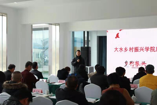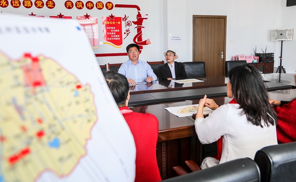 大水泊镇党委书记滕新强和首席专家、国学博士李林等一起讨论一村一品建设