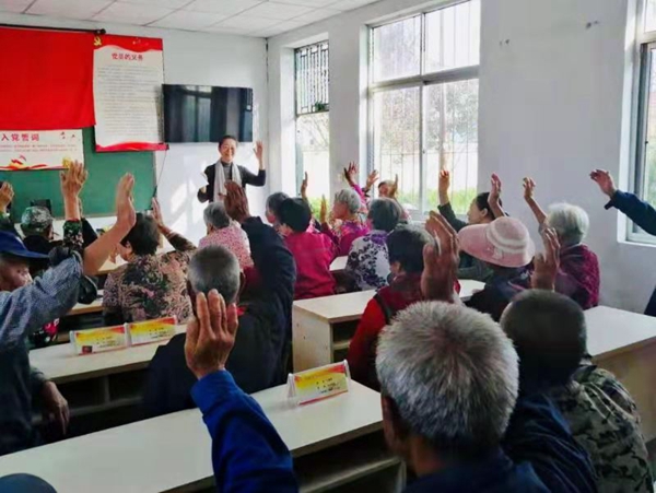 威海乡村振兴首席专家、北京航空航天大学教授张海英在大水泊朱家岭村组织春节村民联欢会