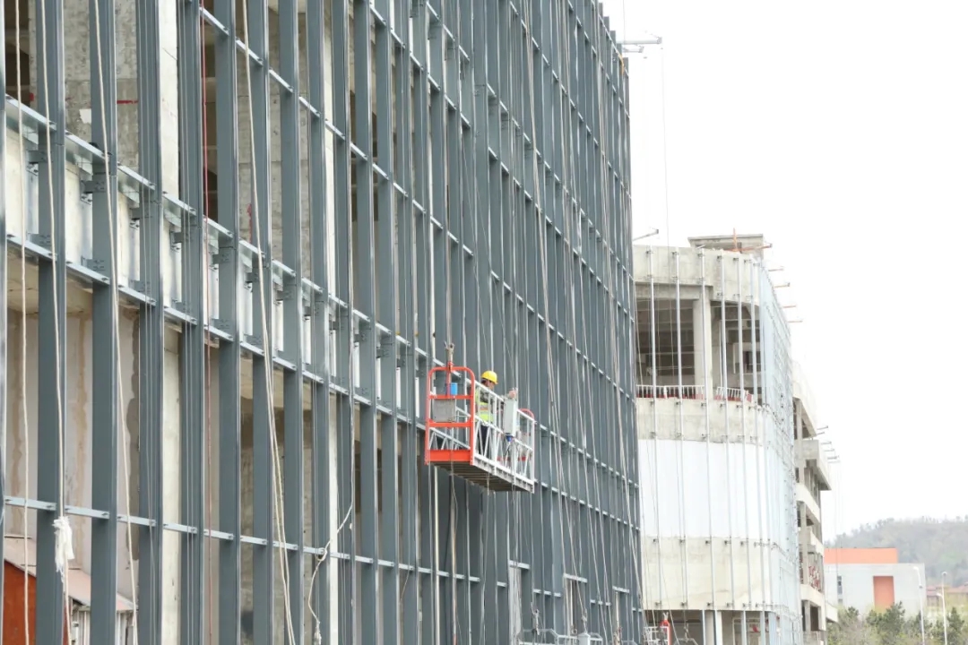 不光是天力电源的项目,高新区的各重点工程都在紧锣密鼓地推进当中。总投资17.89亿元的国家(威海)区域创新中心一期工程项目建设现场,同样是一派繁忙景象,工人们正紧锣密鼓地完成手头的工作,现场可以看到1号楼主体已经完工,外立面的装饰装修施工正在进行。
