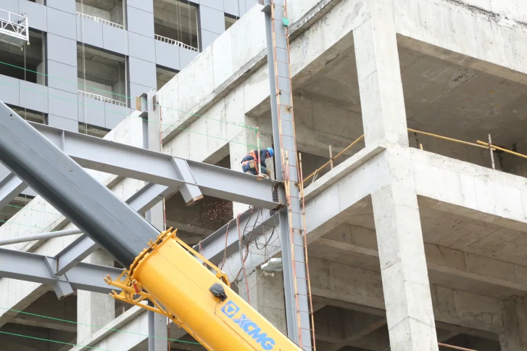 目前项目最大的难点是连廊提升。连廊重达1400多吨,行业内施工先例很少,需要对方案、策划反复论证,现在已具雏形,正在进行连廊的焊接工作。“从项目开工,我们就制定了总进度计划,我们根据这个总进度计划严格执行任务,保证计划的完成,如果有特殊情况,我们会投入更大的人力,来保证按照既定的时间节点顺利完成。”郭金龙说。