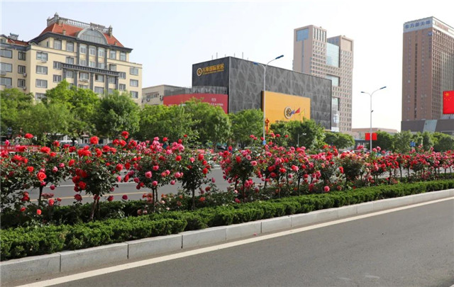 玫瑰由于花色艳、花香浓、花量大、花期长,一直以来深受人们的青睐与喜爱。眼下,不管是开车、坐车,还是行走在文化路高新区段上,都有不一样的享受。亭亭玉立的树状玫瑰,姿态多样的造型玫瑰,花团锦簇的品种玫瑰,一路繁花似锦,一路芳香四溢,将道路装点得宛如一幅缤纷的画卷。无论是远观还是近看,都令人赏心悦目,丰富立体的视觉效果吸引了大批过往市民驻足拍照,随手一拍就是一幅唯美大片。