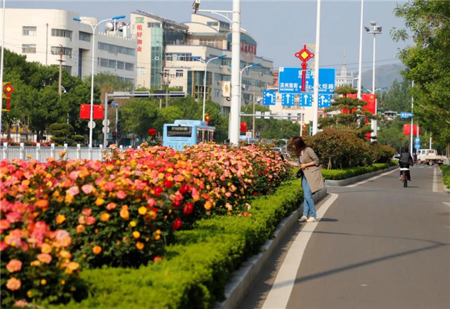 化路是威海的“迎宾大道”,东起古寨东路与文化中路交叉口,西至世昌大道与文化西路交叉口,全长8.9公里。为进一步丰富彩化形式,增强景观的整体性、层次感,去年9月结合路段综合改造,在原有大量品种玫瑰的基础上,再栽植了造型玫瑰1万多株,今年3月又增添树状玫瑰800株,经过近两年增植,路段现拥有藤本、地栽、古桩等多品种玫瑰4.3万株,形成了错落有致、层次分明、色彩缤纷的靓丽花带,成为城区一条最长、最美的“玫瑰大道”。但拍照赏花一定要注意安全,行人一定不要走上机动车道拍照,而骑电动车和驾车的市民,一定要将车辆在合适的地方停好之后再拍照赏花。