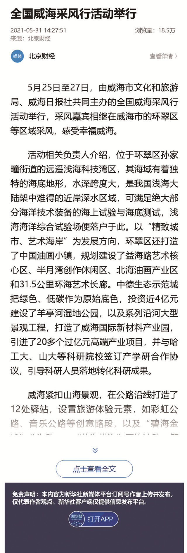 “精致城市·幸福威海”的美名,正借由全国媒体之力,走向更广阔的天地。(Hi威海客户端记者 李林)