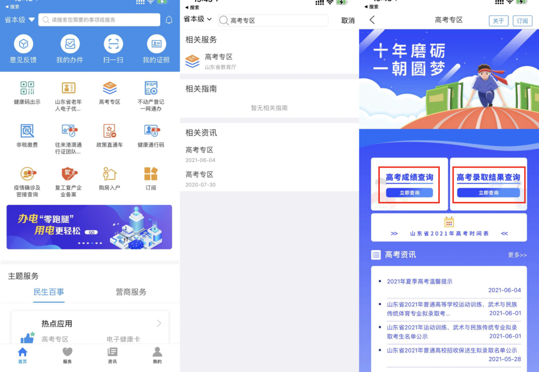 广大考生可下载“爱山东”APP,选择进入“威海站”,搜索进入“高考专区”,了解最及时、最权威高考资讯,并查询自己的高考成绩和录取结果。