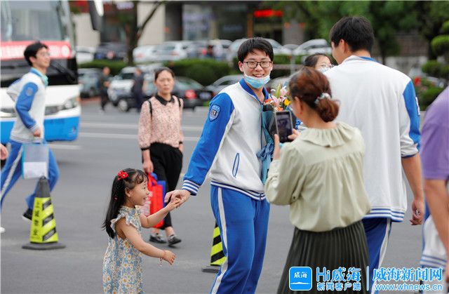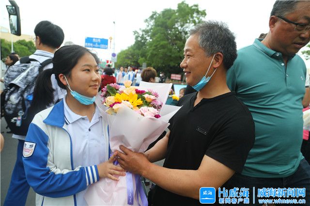 10日中午12时许,距离考试结束还有30分钟,在威海一中(西校区)门口,一位手里捧着4束鲜花的家长格外显眼。“给老师和孩子都准备了,感谢老师的辛苦付出,对孩子来说,这是他人生中的首次大考,无论考试结果如何,仪式感一定要有。”家长郭新峰说。