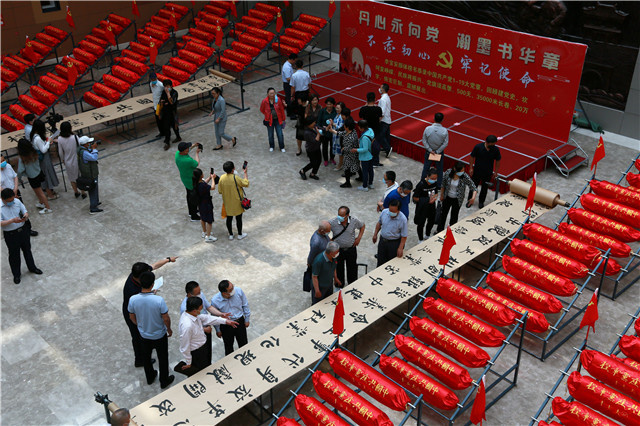 具有歌舞特长的老干部,用群众喜闻乐见的形式,创新开展红色文艺活动,创作了一批主题鲜明、健康向上的节目。具有书画特长的老干部也纷纷“执笔”,用最好的艺术作品来庆祝建党100周年。全国离退休干部先进个人、市老年大学学员党委书记毕爱香耗时1年多,为胶东(威海)党性教育基地——红色胶东展馆创作的“大参军、大支前”大型剪纸作品,讲述了胶东人民志愿支前、参军报国的故事;文登区退休干部李宝安,历时500余天,写出3.5万米长的党章榜书长卷……