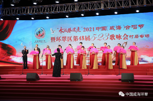 5月25日晚,威海市群众艺术馆海洋剧场内歌声嘹亮,“永远跟党走”2021年中国(威海)合唱节暨环翠区第48届5·23歌咏会在此举办。来自环翠区、高新区、市老年大学、老干部活动中心等老干部合唱团的《歌唱祖国》《灯火里的中国》《歌唱中国共产党》等红色歌曲,将整场晚会推向高潮。