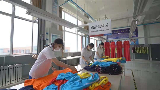 以参与制作赛事大赛服装的汇泉服装生产性实训基地为例,该基地由山东汇泉工业有限公司和威海职专服装设计与工艺专业联手成立,完全按照企业生产车间进行布局设计,面积达1800平方米,实现了教学与生产“零距离”对接,将消耗性实训转变为了生产性实训,切实提高了育人的针对性和实效性。此前已经为多家企事业单位完成服装订单,备受好评。