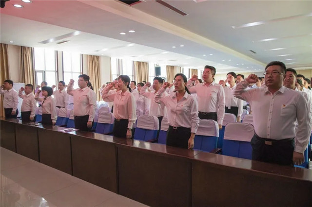 升旗仪式结束后,全体党员干部参加重温入党誓词活动。面对鲜红的党旗,高举右拳,再次庄严宣誓,坚定入党使命、奋斗初心,献礼中国共产党百年华诞。